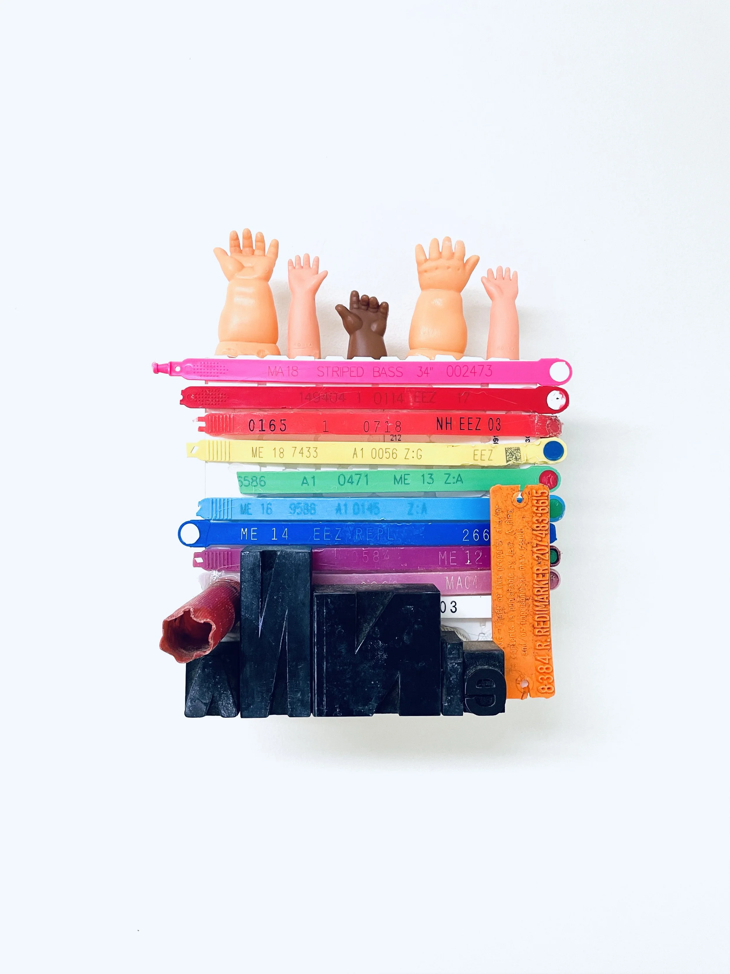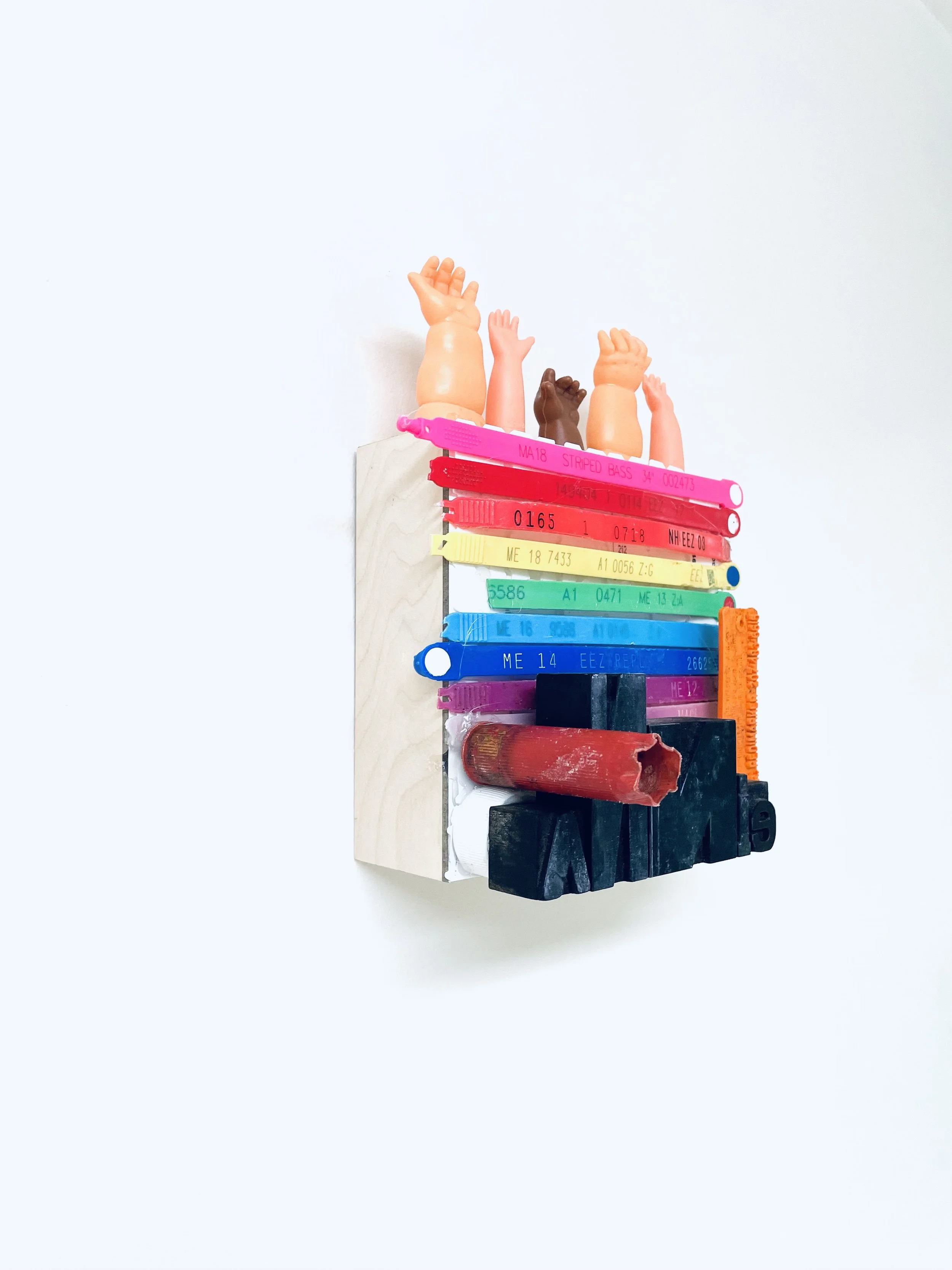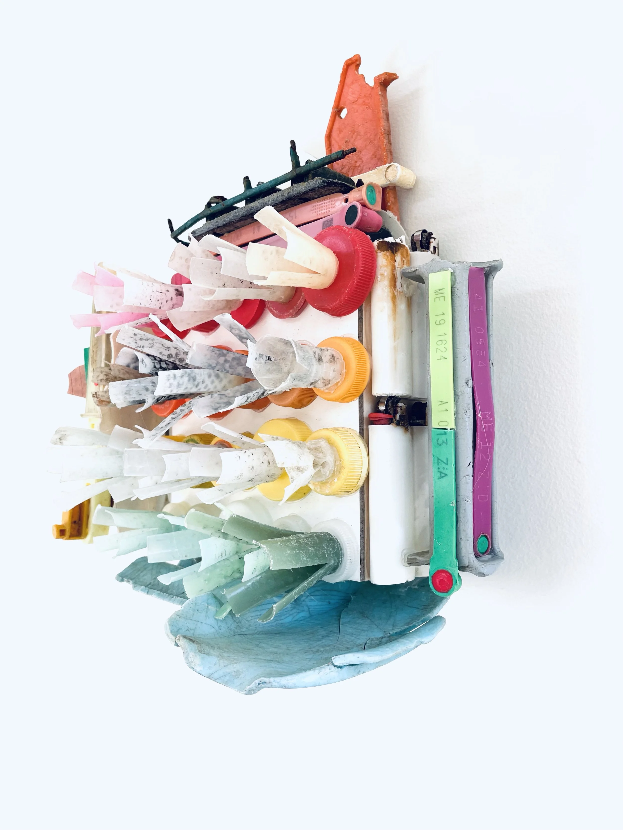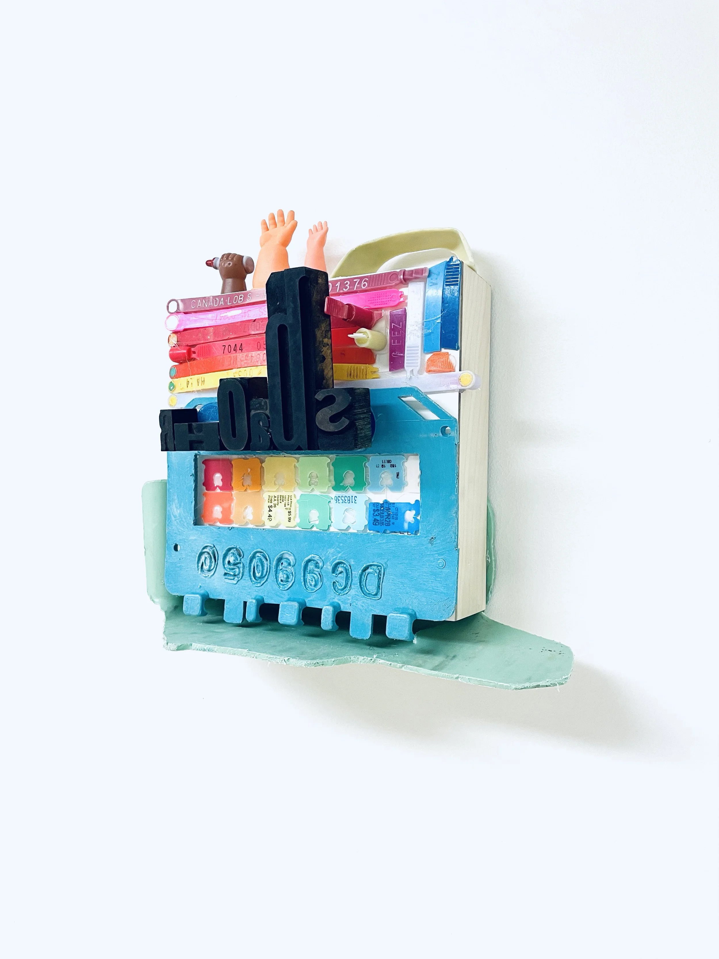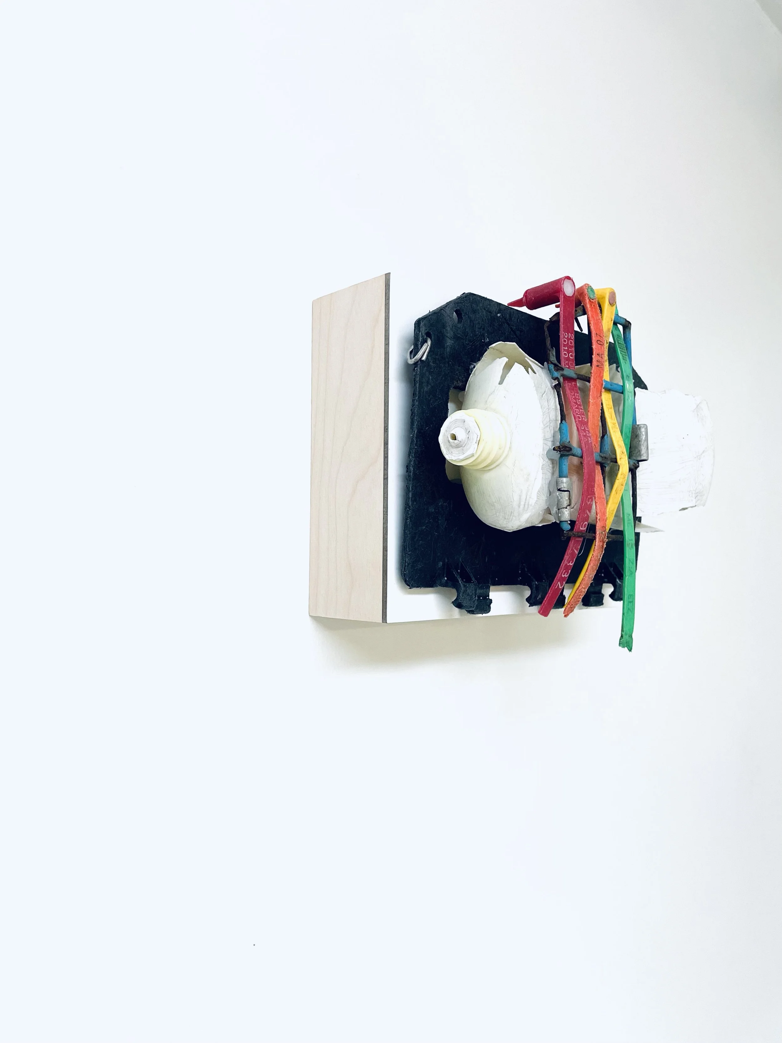 found objects on board, 6” x 8”
